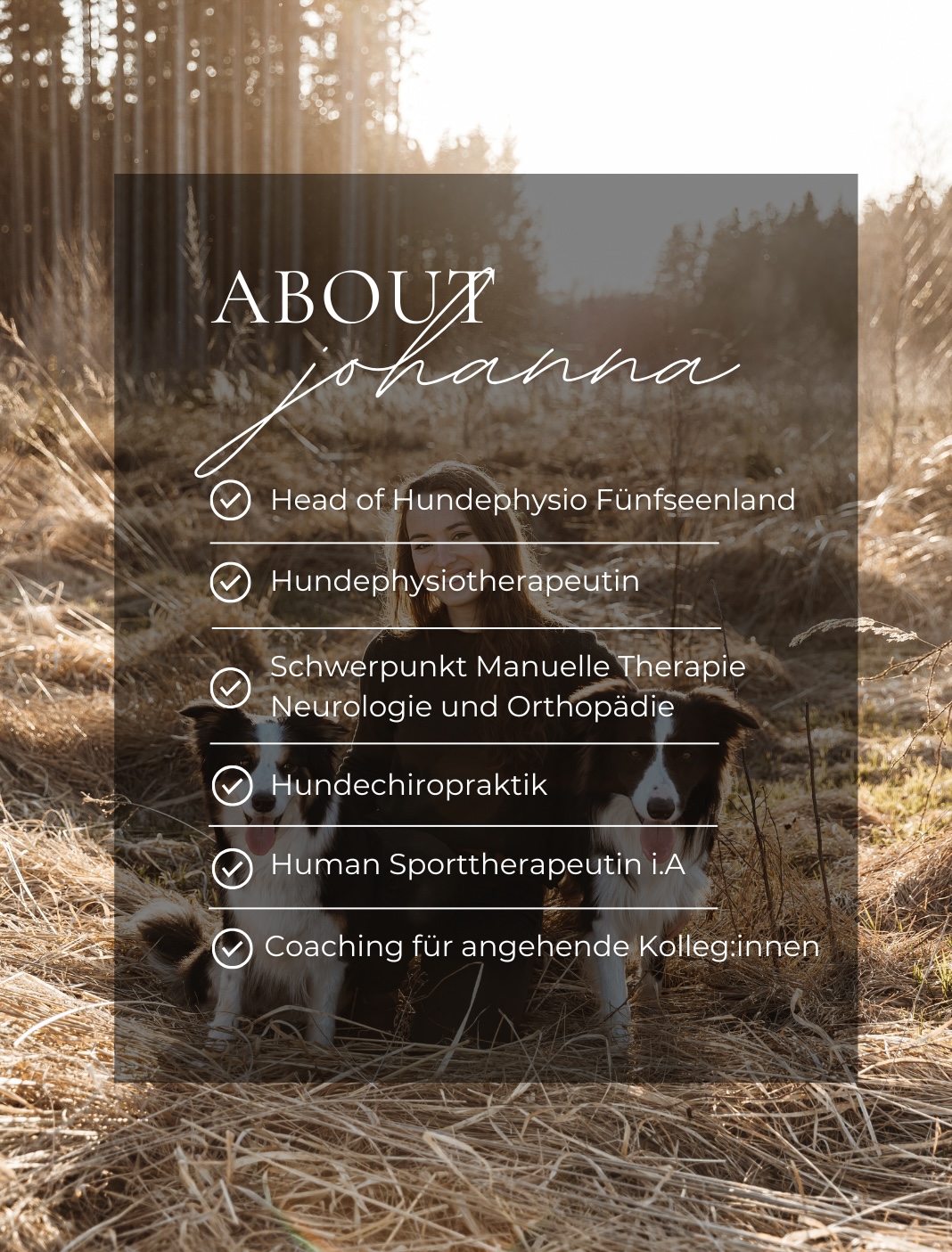 Hundephysiotherapie kann nach Verletzungen, Operationen oder im Alter einen entscheidenden Unterschied machen: Sie lindert Schmerzen, erhält die Beweglichkeit, beschleunigt die Heilung und steigert die Lebensqualität Ihres Hundes nachhaltig. Bei der Hundephysio Fünfseenland steht Ihr Hund als Familienmitglied im Mittelpunkt. Nach einer gründlichen Untersuchung und Gangbildanalyse entwickeln wir einen maßgeschneiderten Therapieplan, der genau auf die individuellen Bedürfnisse Ihres Hundes abgestimmt ist. So erzielen wir schnelle Fortschritte, spürbare Erleichterung und sorgen für langfristige Gesundheit.